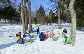 予めペットボトルで作ったバケツに、親子でシールを貼ったり、マスキングテープを貼ってデコレーションしてもらいました。